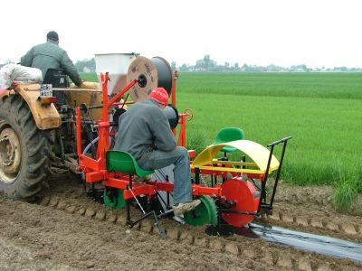 هبوب الرياح. يمكن للآلة تغطية النباتات في المحاصيل المسطحة أو التلال أو الأسرة. يتم استخدامه لتغطية مزارع الكرنب والقرنبيط والبطاطس وشتلات الخضروات والفراولة والمشاتل.